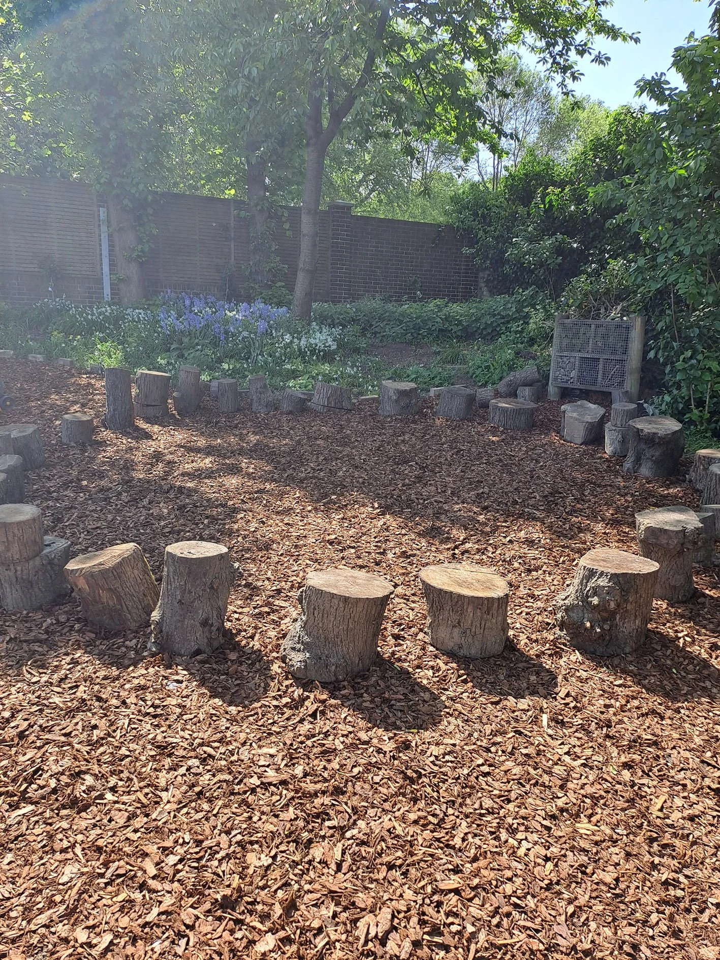 The Blakedown team cleared and prepared the site, constructed several raised timber planters at varying heights for different age groups, installed timber edging to form a new shrub bed, and laid bark mulch throughout to create a safe, low-maintenance surface. The planters and beds were carefully designed to support inclusive use and hands-on learning for all pupils.